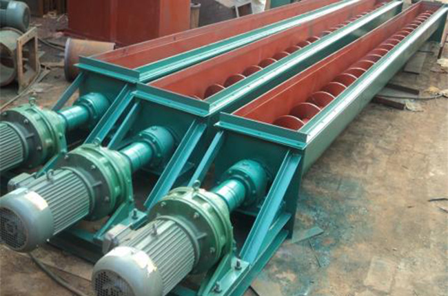 螺旋輸送機(jī)一般由輸送機(jī)本體、進(jìn)出料口及驅(qū)動(dòng)裝置三大部分組成;螺旋輸送機(jī)的螺旋葉片有實(shí)體螺旋面、帶式螺旋面和葉片螺旋面三種形式,其中,葉片式螺旋面應(yīng)用相對(duì)較少,主要用于輸送粘度較大和可壓縮性物料,這種螺懸面型,在完成輸送作業(yè)過(guò)程中,同時(shí)具有并完成對(duì)物料的攪拌、混合等功能。